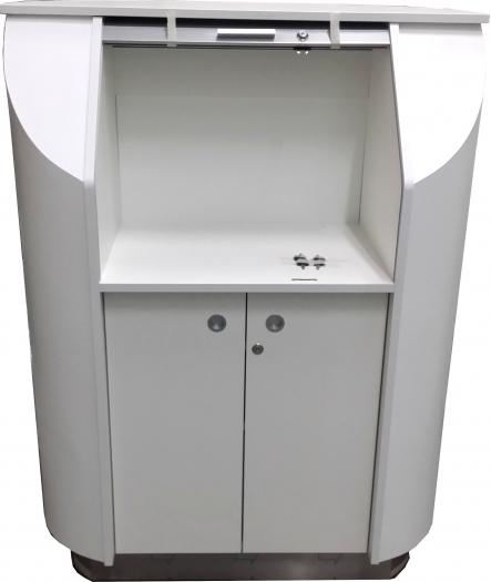 Pulpit (lada) ochrony - wolnostojący mebel z zamykanym na klucz miejscem dedykowanym do umieszczenia monitora poglądowego systemu CCTV.