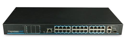 - 24x port RJ45 PoE 802af/at (10/100Mbps, Auto MDI/MDX)