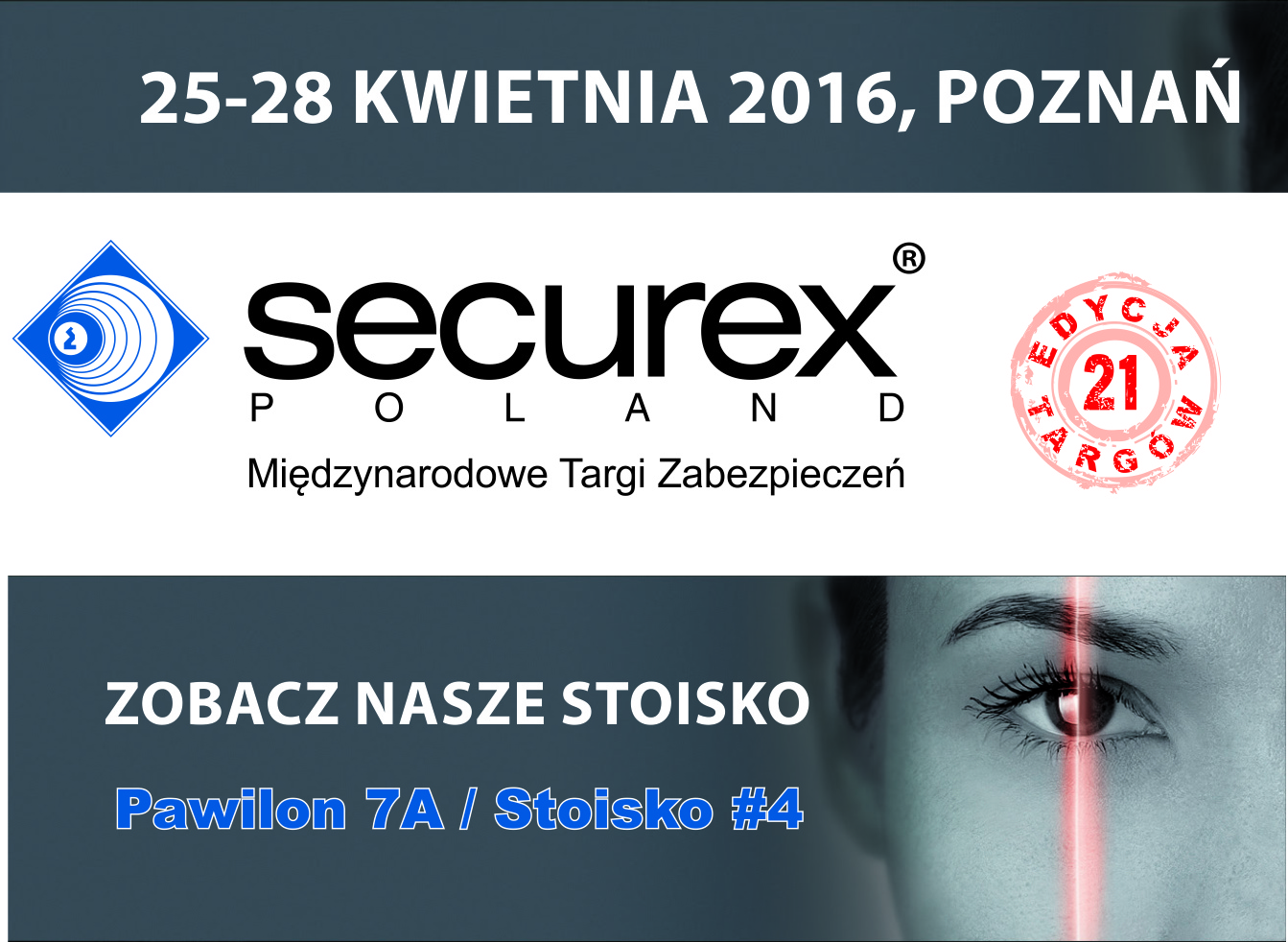 Z przyjemnością chcemy serdecznie zaprosić do odwiedzenia naszego stoiska podczas Międzynarodowych Targów Zabezpieczeń SECUREX2016 w Poznaniu, które odbędą się w dniach 25-28 Kwietnia 2016r. Zaprezentujemy nasze najnowsze rozwiązania techniczne z zakresu Elektronicznych Systemów Zabezpieczeń. W miłej i luźnej atmosferze, przy filiżance smacznej kawy będziemy mogli porozmawiać na tematy biznesowe.